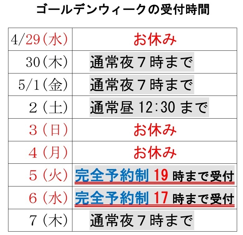 | 15:00~19:00 | ● | ● | ● | ● | ● | 予約のみ | ─ |